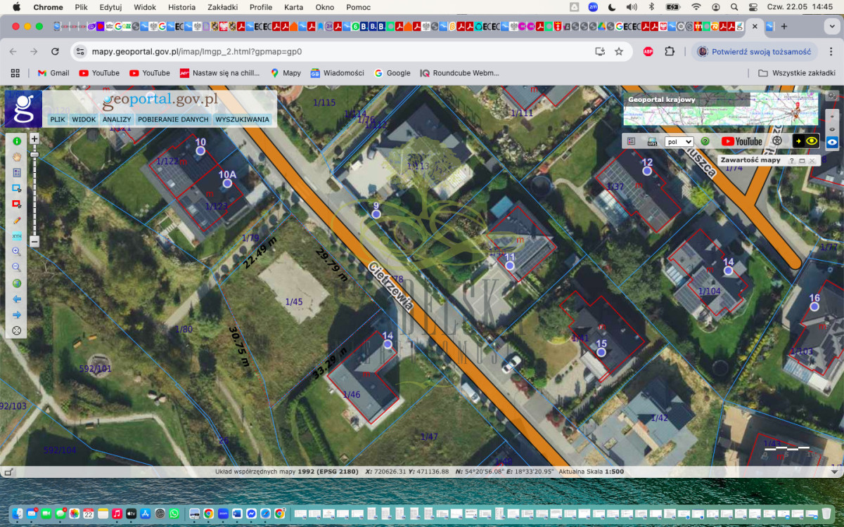 804 m2 plus 98 metrów dzierżawy od miasta. Działka z aktualnym planem zagospodarowania przestrzennego oznaczona jako M23 teren zabudowy mieszkaniowej-wszystkie formy. Plan zagospodarowania nr. XLII/1495/05.