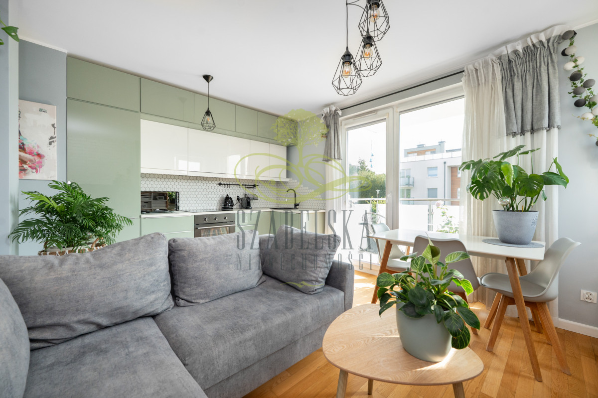 Funkcjonalne 3 pokojowe mieszkanie zaprojektowane przez dekoratora wnętrz, w kameralnym budynku nowszego typu, z balkonem, zewnętrznym miejscem postojowym oraz komórką lokatorską. Sprzedaż z pełnym wyposażeniem.
