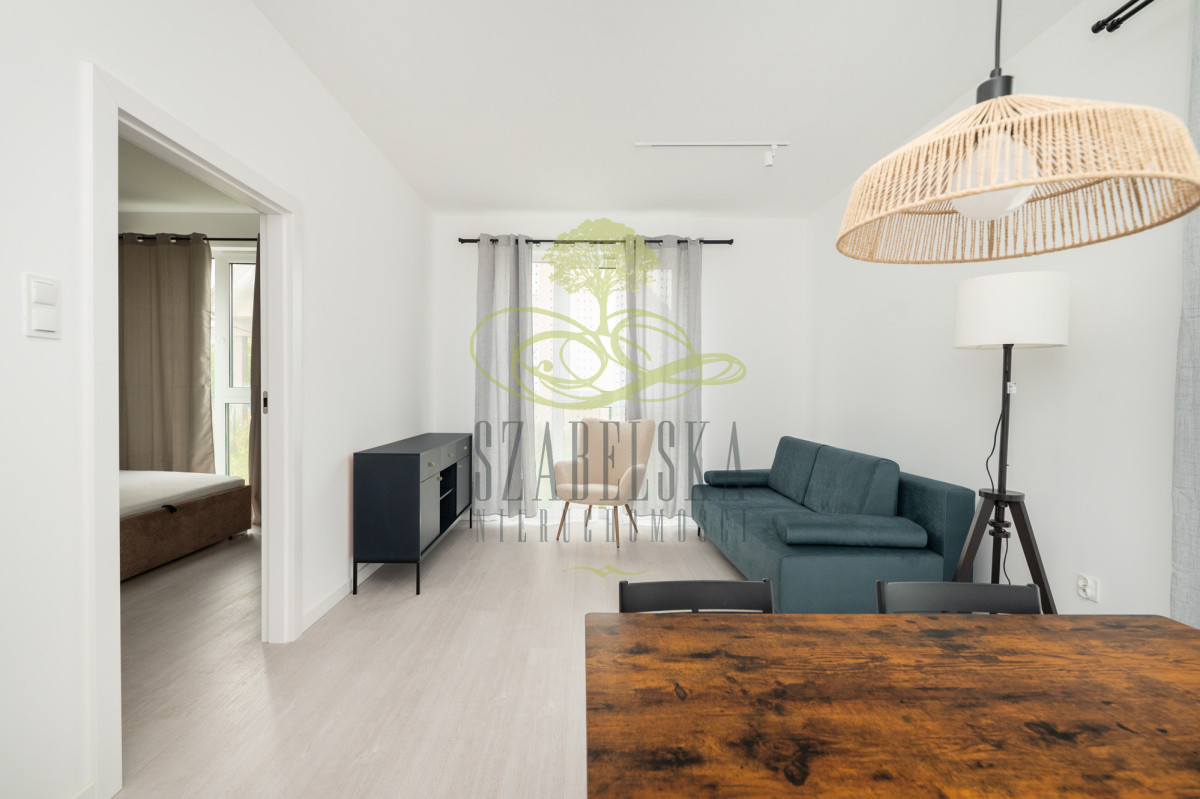 Przytulne, całkowicie urządzone dwa pokoje, w tym jeden z aneksem kuchennym, usytuowane na parterze w kameralnym budynku ( tylko 4 mieszkania) w centrum osiedla.